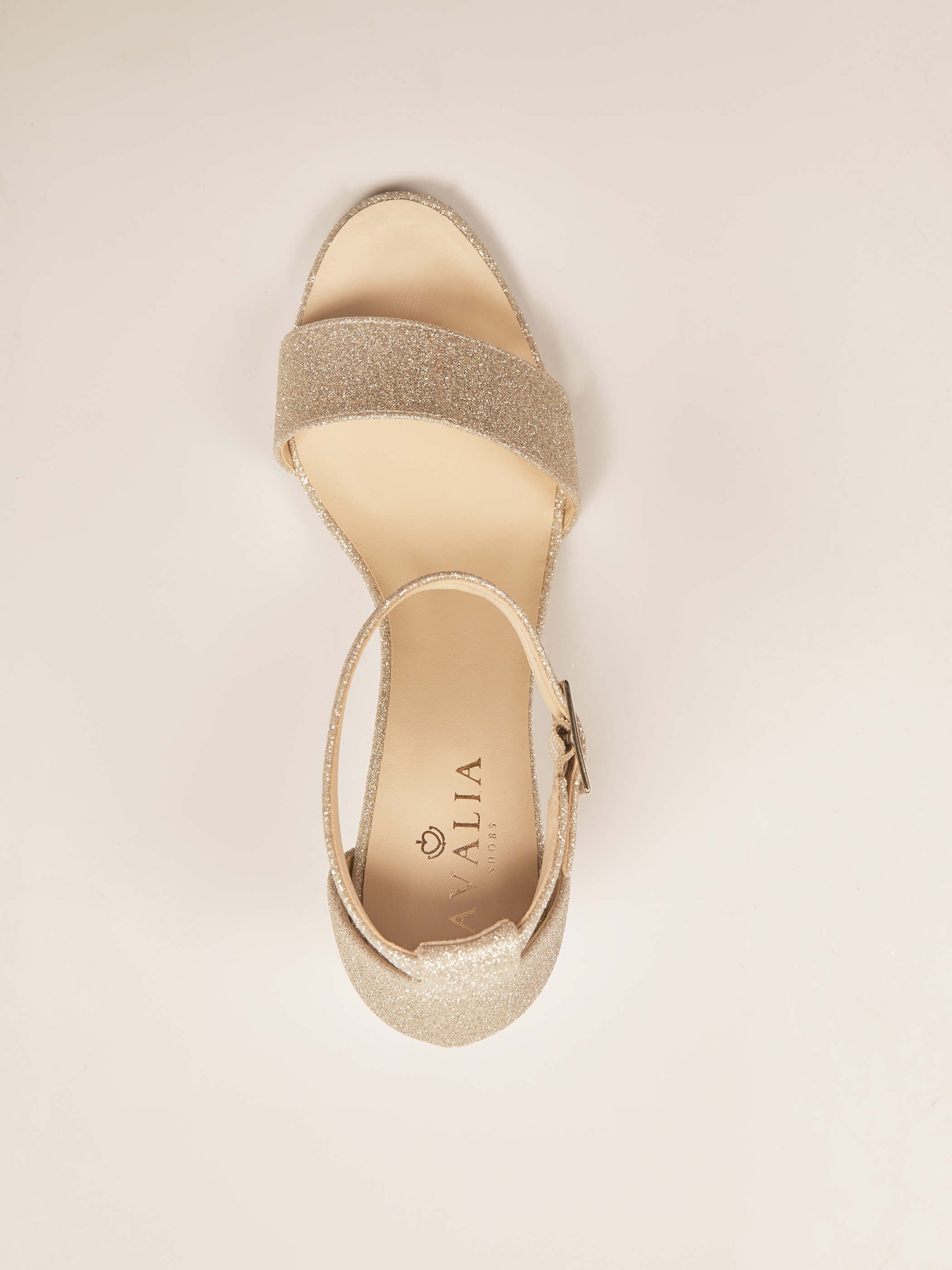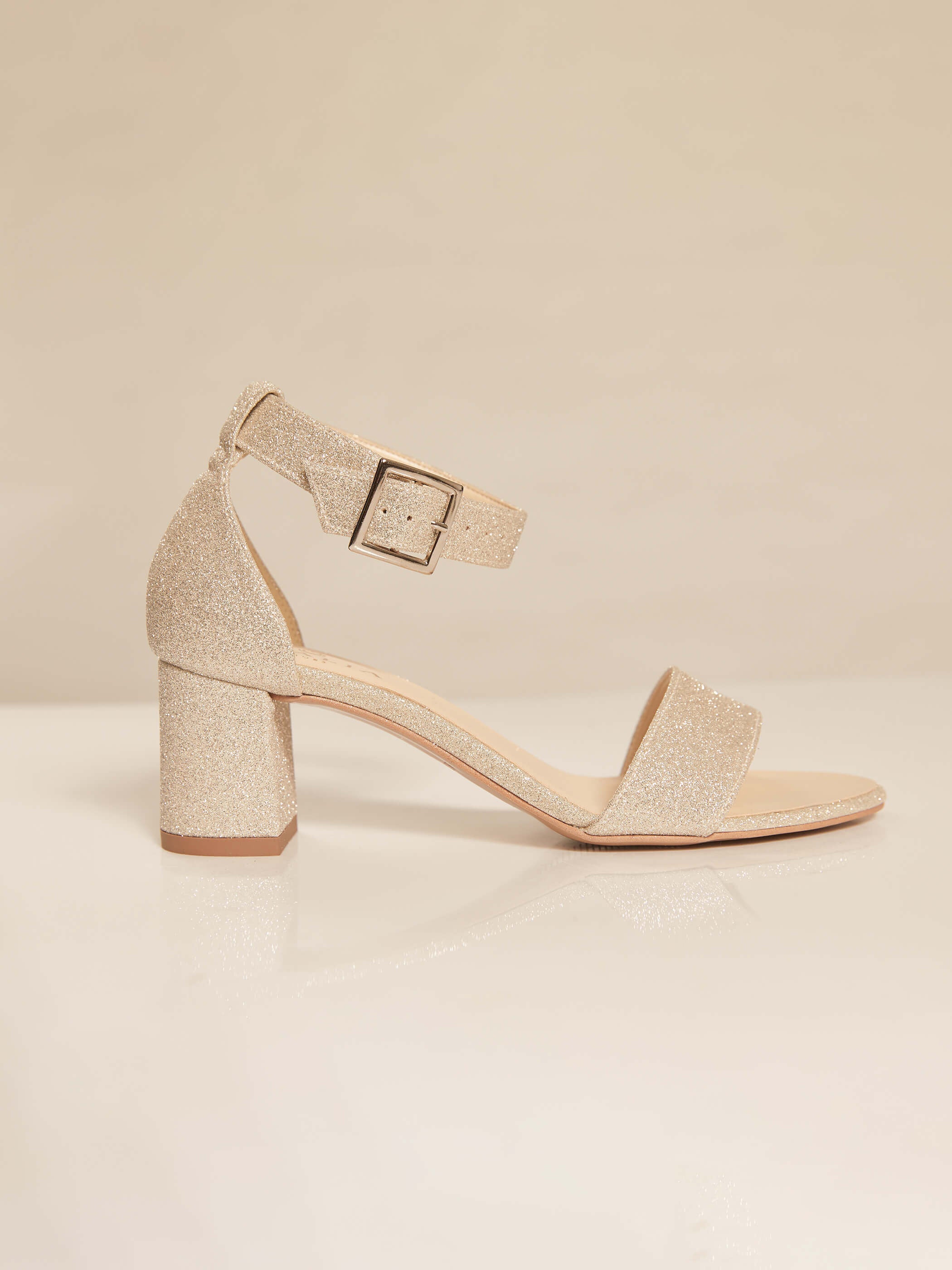 Der wunderschöne Pumps von Bianco Evento ist komplett mit einem feinen blassen Goldschimmer überzogen und hat eine offene Spitze. Mit dem breiten Knöchelriemen und der dekorativen Schnalle sorg er für den perfekten Halt. Die Absatzhöhe beträgt 6cm. Das weiche Fussbett im Schuh bieten einen sehr hohen Tragekomfort. Detailverliebt entworfen und hergestellt in der EU.